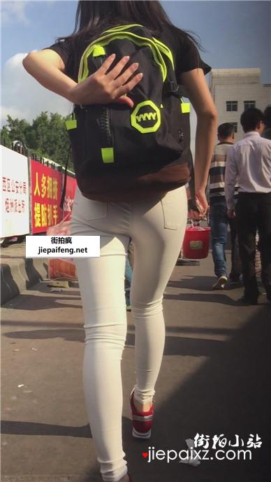 街拍细腿小蛮腰好身材马尾辫秀丽美女