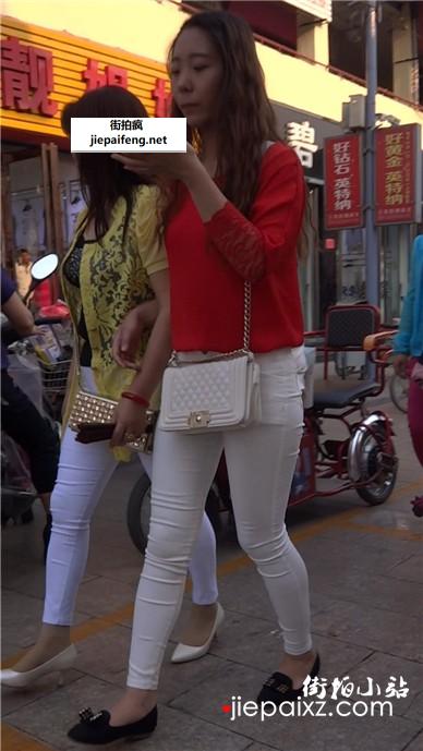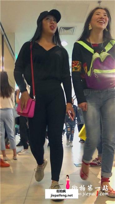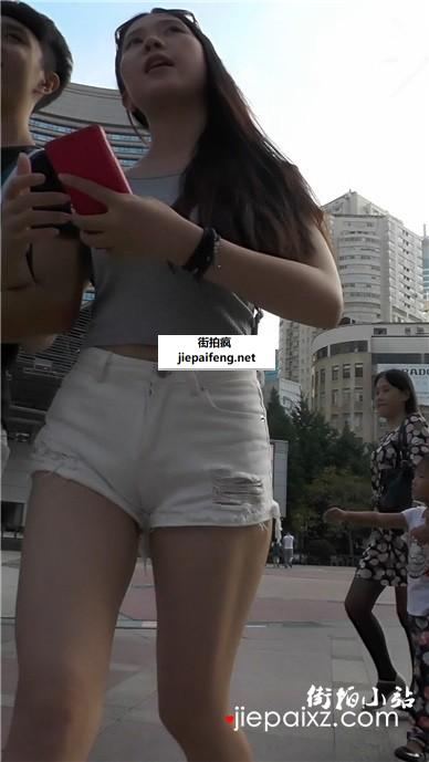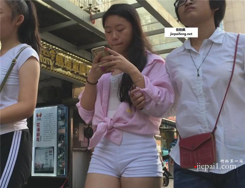紧俏美臀高腰热裤少女跟闺蜜逛街
