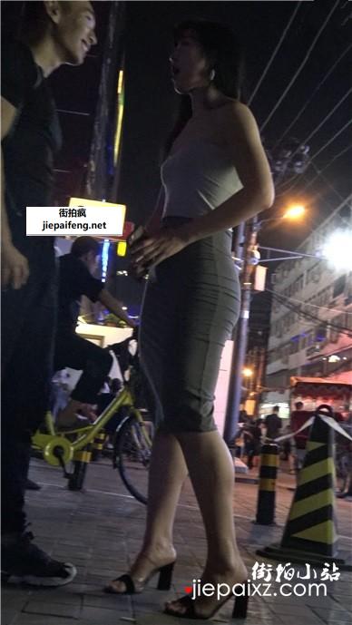 4k-街拍粉色连衣裙丰满美女跟老外男友逛街