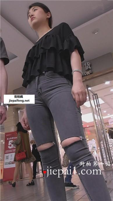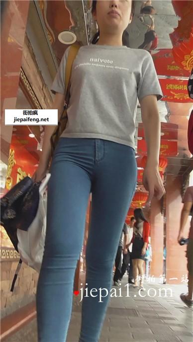 街拍极品紧身灰牛美女,感觉快被撑爆了。