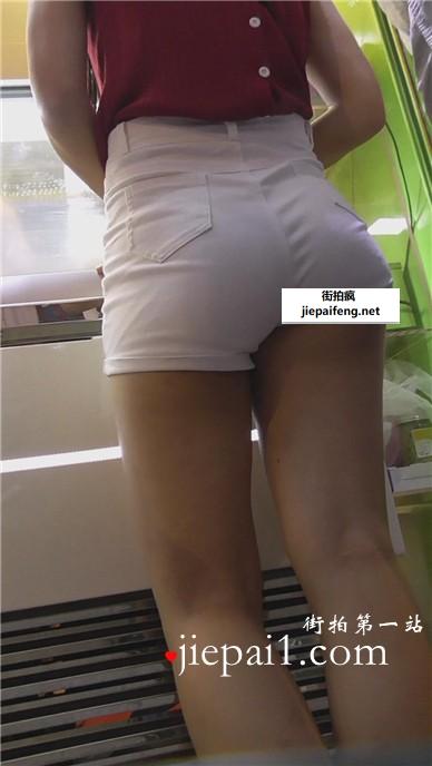 街拍超级美臀高腰白短热裤性感美腿美眉