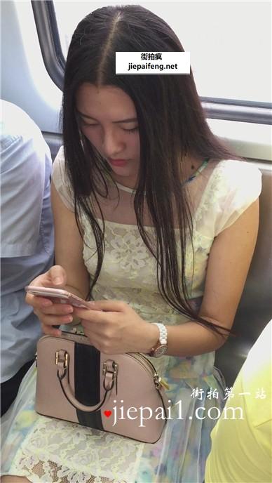 地铁上拍摄v领碎花裙美女迷人的事业线。