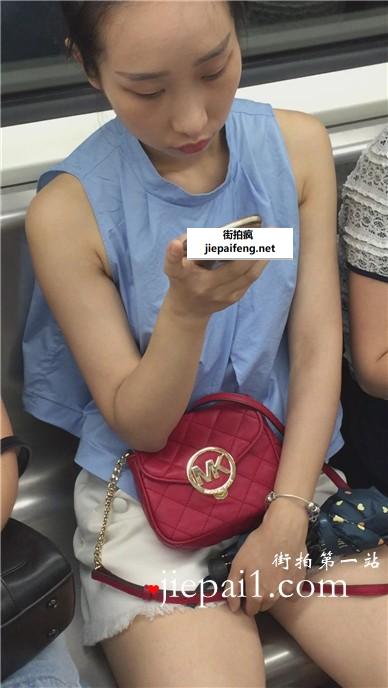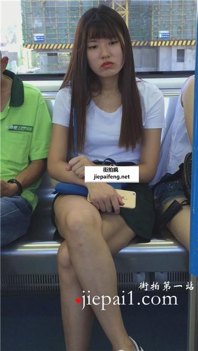 地铁偶遇白腿板鞋美眉,小脸蛋红彤彤气色红润。