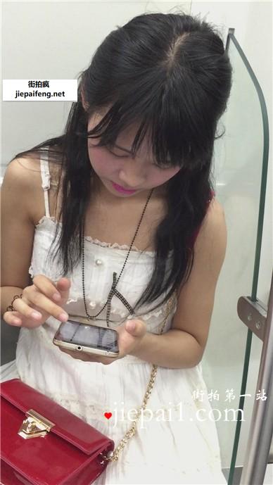 低头玩手机的白丝袜美腿可爱萌妹子。