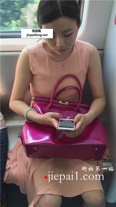 地铁车厢偶遇粉色连衣裙美腿高跟鞋美少妇。