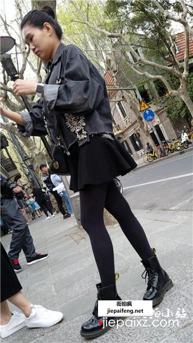 4k超清,街拍性感黑丝短裙大长腿美女,再配双银白色高跟鞋 无敌了