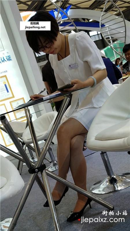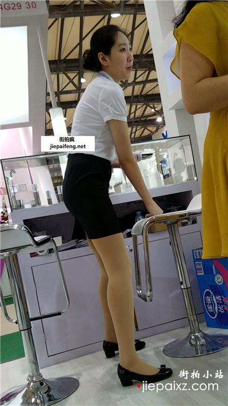4k-白衬衫OL短裙制服街拍肉丝化妆品销售