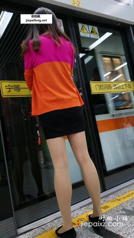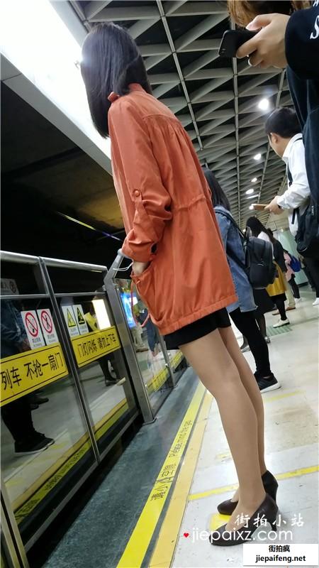 4K-等地铁的橙色外套短裙街拍肉丝美腿女孩