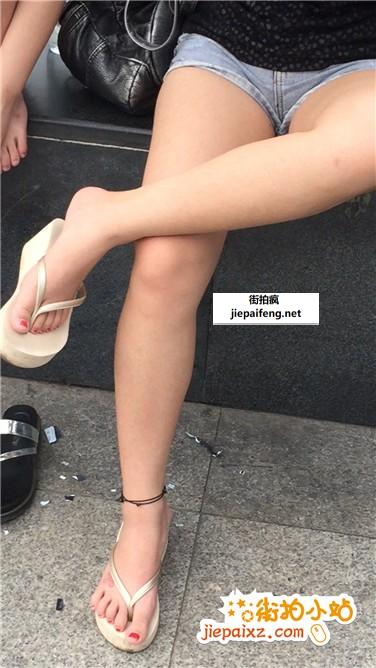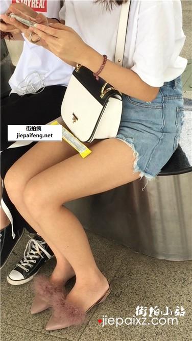 4k-翘着二郎腿的牛仔短裤性感美腿凉高跟街拍美女