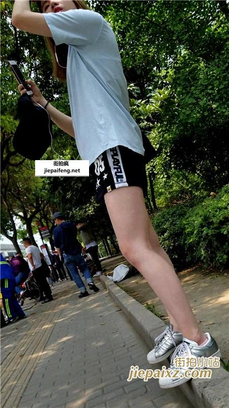 街拍青春甜美牛仔热裤松糕鞋气质美腿美女