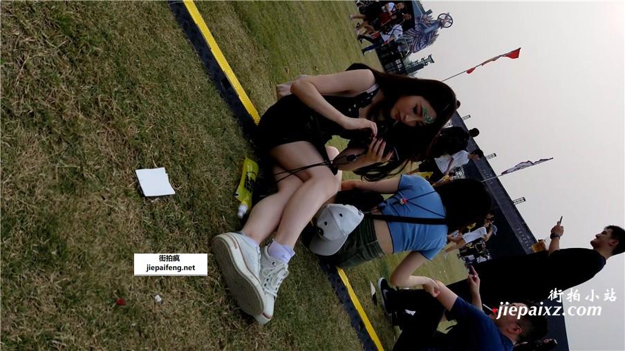 4K - 牛仔外套街拍短裙极品美腿清秀肉丝袜美女