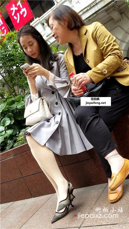 4K - 丝袜美腿尖嘴高跟鞋街拍灰色连衣裙清秀美女