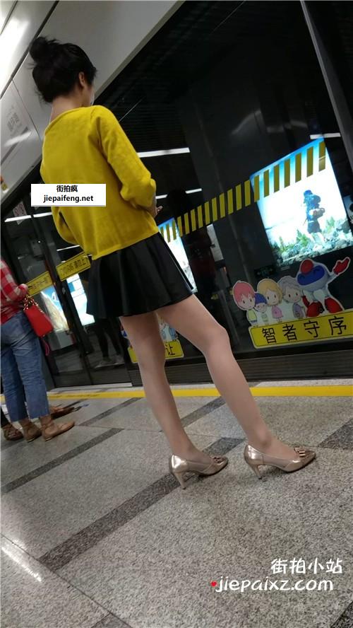 黄衣服,短裙,街拍丝袜高跟苗条美女
