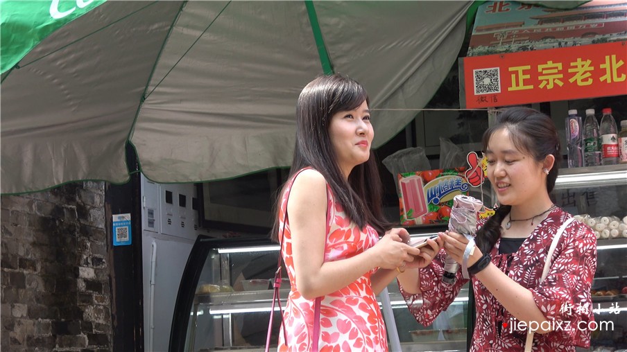 4k-米色凉鞋鱼嘴高跟街拍母女