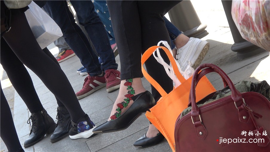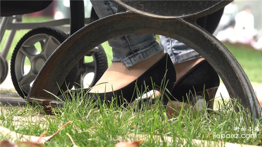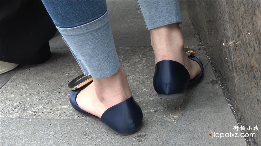 4k-紧身蓝牛黄鞋街拍丝袜美足