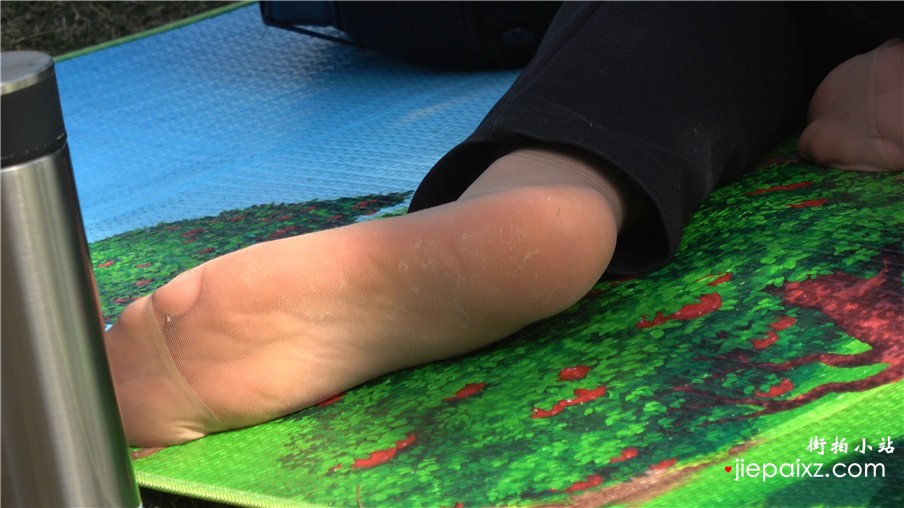 4k-极品黑色高跟鞋裸足街拍美女