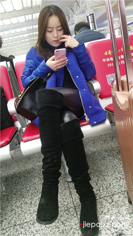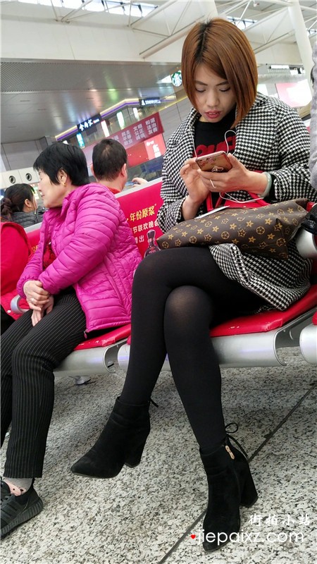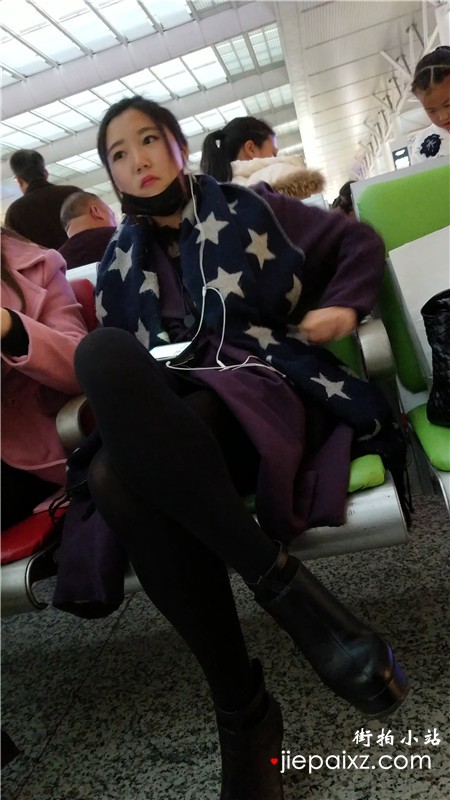 4k-候车室内拍摄白皙嫩腿眼镜妹