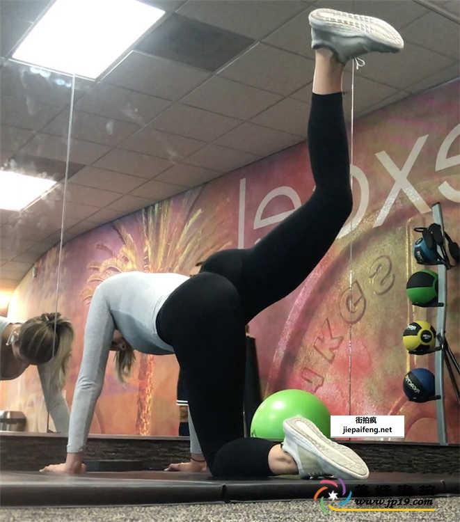 健身房黑色瑜伽裤圆臀性感大胸金发美女[MP4/1.15G]