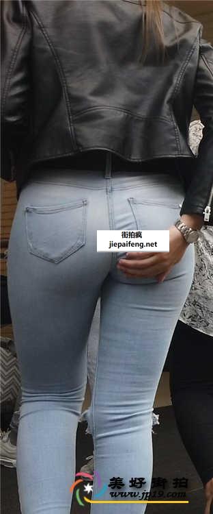 浅蓝紧绷牛仔裤金发长腿翘臀洋妞[MP4/297M]