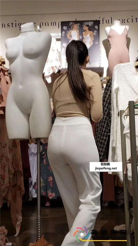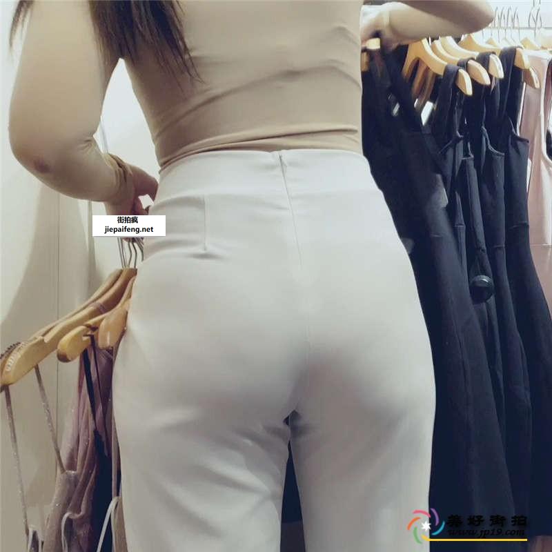 服装店休闲紧身白裤洋妞极品圆润饱满翘臀[MP4/0.98G]