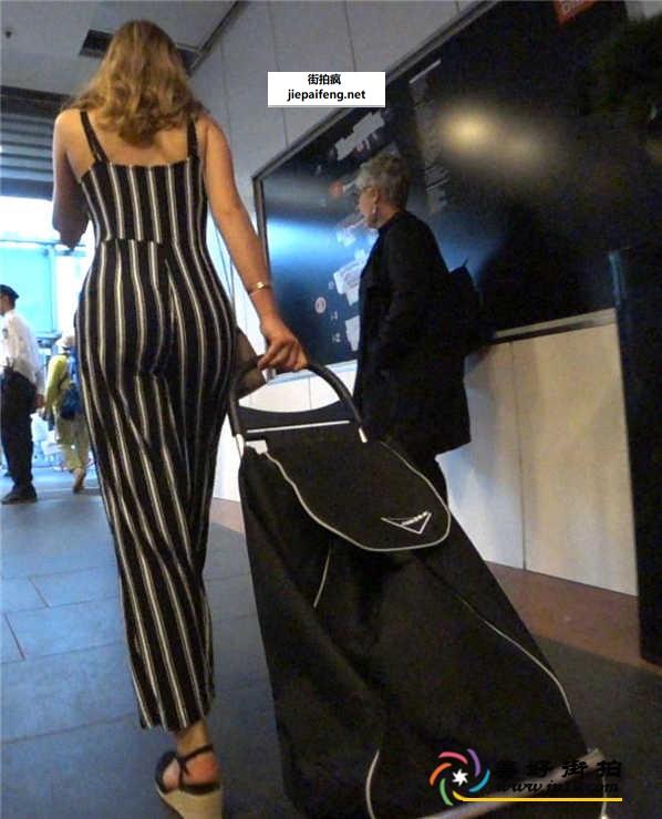 跟拍条纹连体休闲裤金发美眉性感翘臀[MP4/517M]