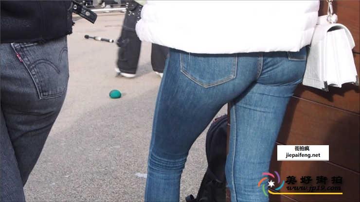 街拍灰色和蓝色紧身牛仔裤两个大学生美眉[MP4/112M]