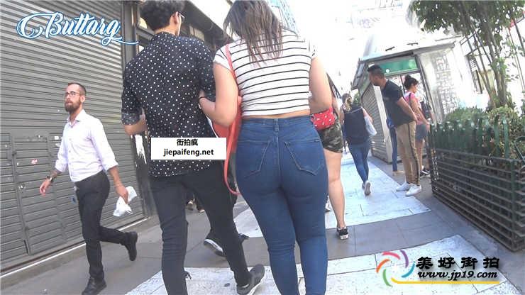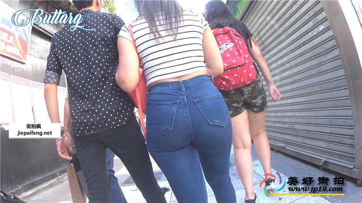 街头跟拍蓝色紧绷牛仔裤饱满丰臀洋妞[MP4/424M]