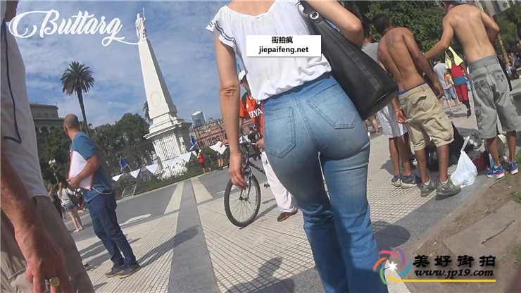 街头跟拍蓝色紧绷牛仔裤性感圆润翘臀长腿OL少妇[MP4/348M]