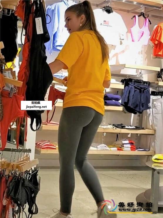 服装店近拍灰色紧身瑜伽裤金发小妹[MP4/637M]
