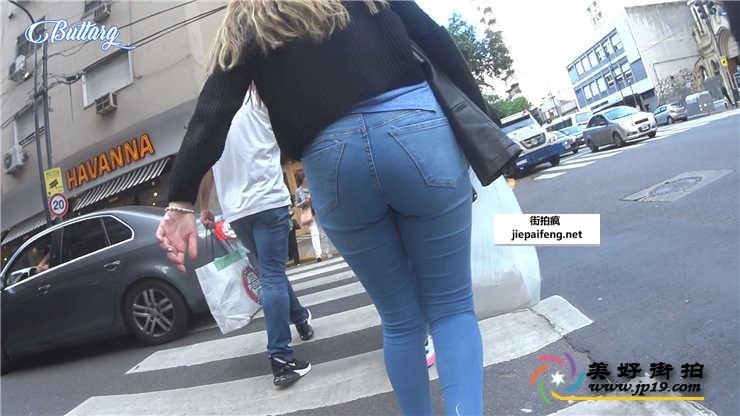 街头跟拍两个紧身蓝牛饱满圆润大屁股大洋马[MP4/708M]