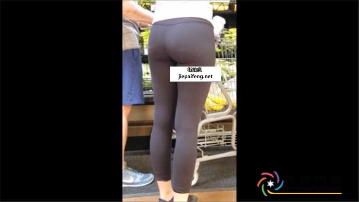 超市黑色紧身氨纶裤金发可爱洋妞美腿翘臀[MP4/226M]