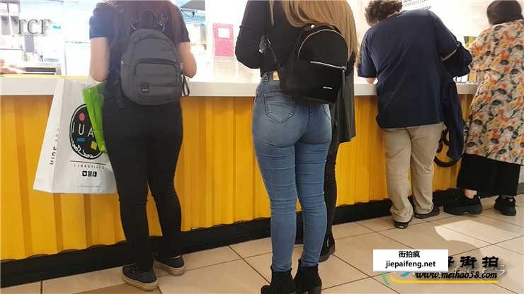 商场跟拍蓝色紧绷牛仔裤金发美妞性感饱满圆润大屁股[916M]