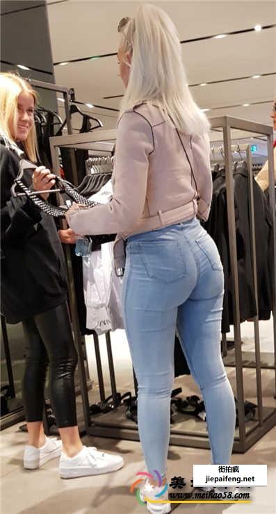 街拍金发洋妞牛仔蓝性感美腿圆润翘臀[MP4/763M]