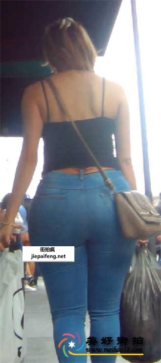 街拍白色和蓝色紧绷牛仔裤洋妞极品饱满圆润大屁股[MP4/432M]