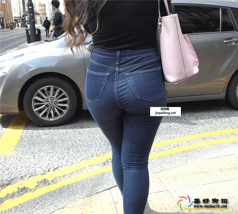 蓝色紧绷牛仔裤OL洋妞性感饱满圆臀[MP4/462M]