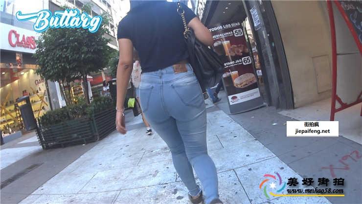 街头跟拍蓝色紧绷牛仔裤OL洋妞饱满圆臀[MP4/526M]