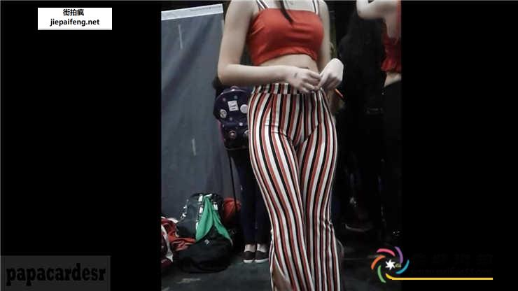 街拍条纹紧身裤性感身材长发美女极品美腿翘臀[MP4/377M]
