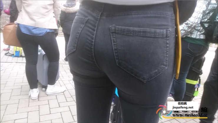 街拍黑色紧身牛仔裤美眉极品圆润饱满翘臀[MP4/885M]