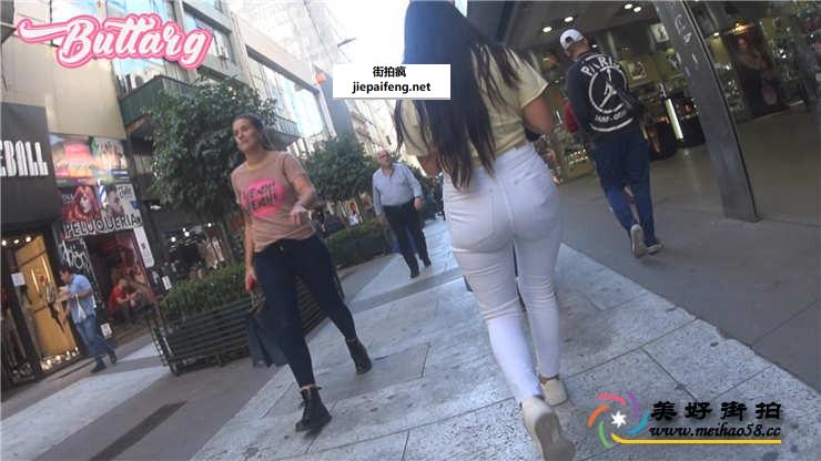 街头跟拍紧绷白裤洋妞圆润翘臀[MP4/373M]