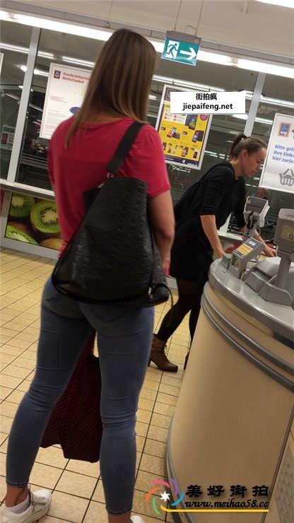 超市购物的蓝色紧绷牛仔裤金发洋妞性感翘臀[MP4/609M]