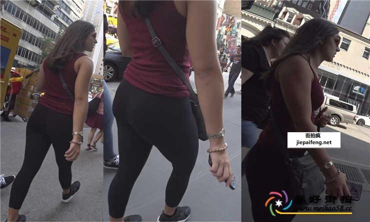 街拍黑色打底裤洋妞饱满圆臀[MP4/469M]