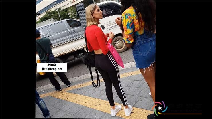 韩国旅游的黑色打底裤金发洋妞,没有穿胸罩[MP4/166M]