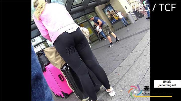 街拍黑色氨纶裤金发洋妞饱满圆翘臀[MP4/447M]