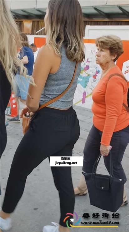 街拍黑色休闲裤金发洋妞饱满翘臀[MP4/368M]