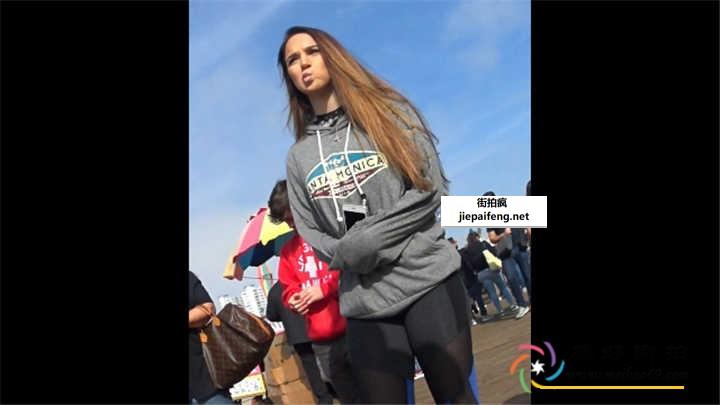跟拍金色长发洋妞灰色紧身氨纶裤圆润翘臀[MP4/468M]