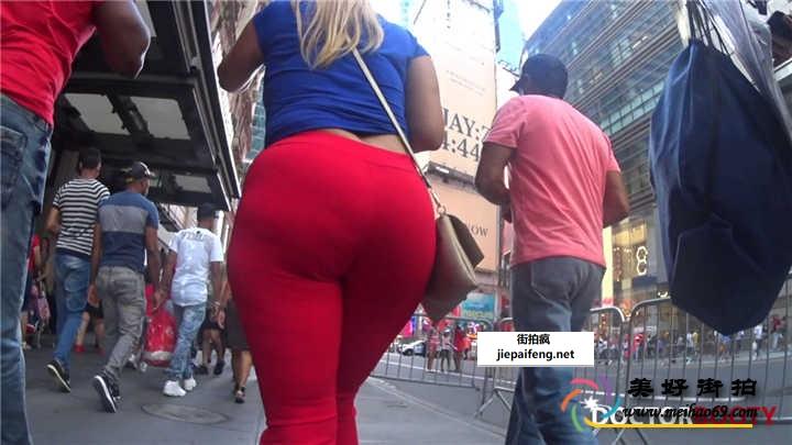 街拍红色紧身裤金发洋妞饱满巨臀[MP4/266M]