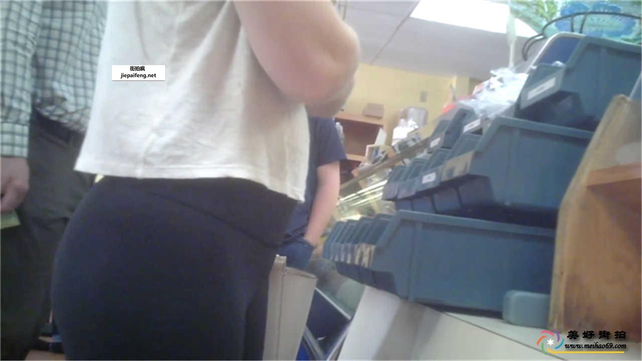 商店近拍黑色紧身氨纶裤金发美眉饱满圆润翘臀[MP4/164M]