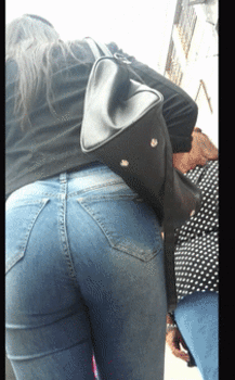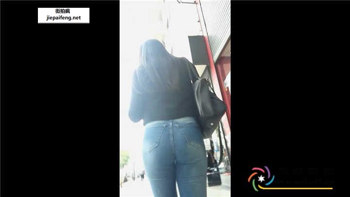 街拍蓝色紧绷牛仔裤OL洋妞性感大屁股[MP4/130M]