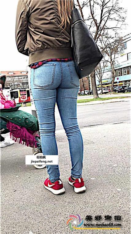 街拍蓝色紧绷牛仔裤金发美眉美腿翘臀[MP4/2.06G]