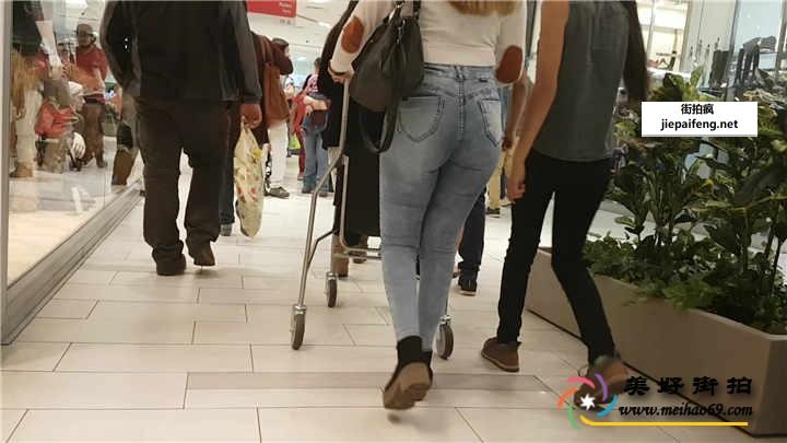 商场跟拍蓝色紧绷牛仔裤洋妞极品饱满圆润翘臀[MP4/230M]